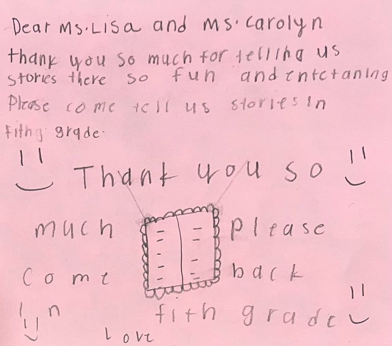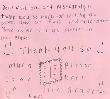 "My students were SO happy when” the storytellers “would show up! They’d yell, “YESSSSS!” 🙂 It was always a great start to our day! :)” – Homestead Elementary, 2nd Grade Teacher
